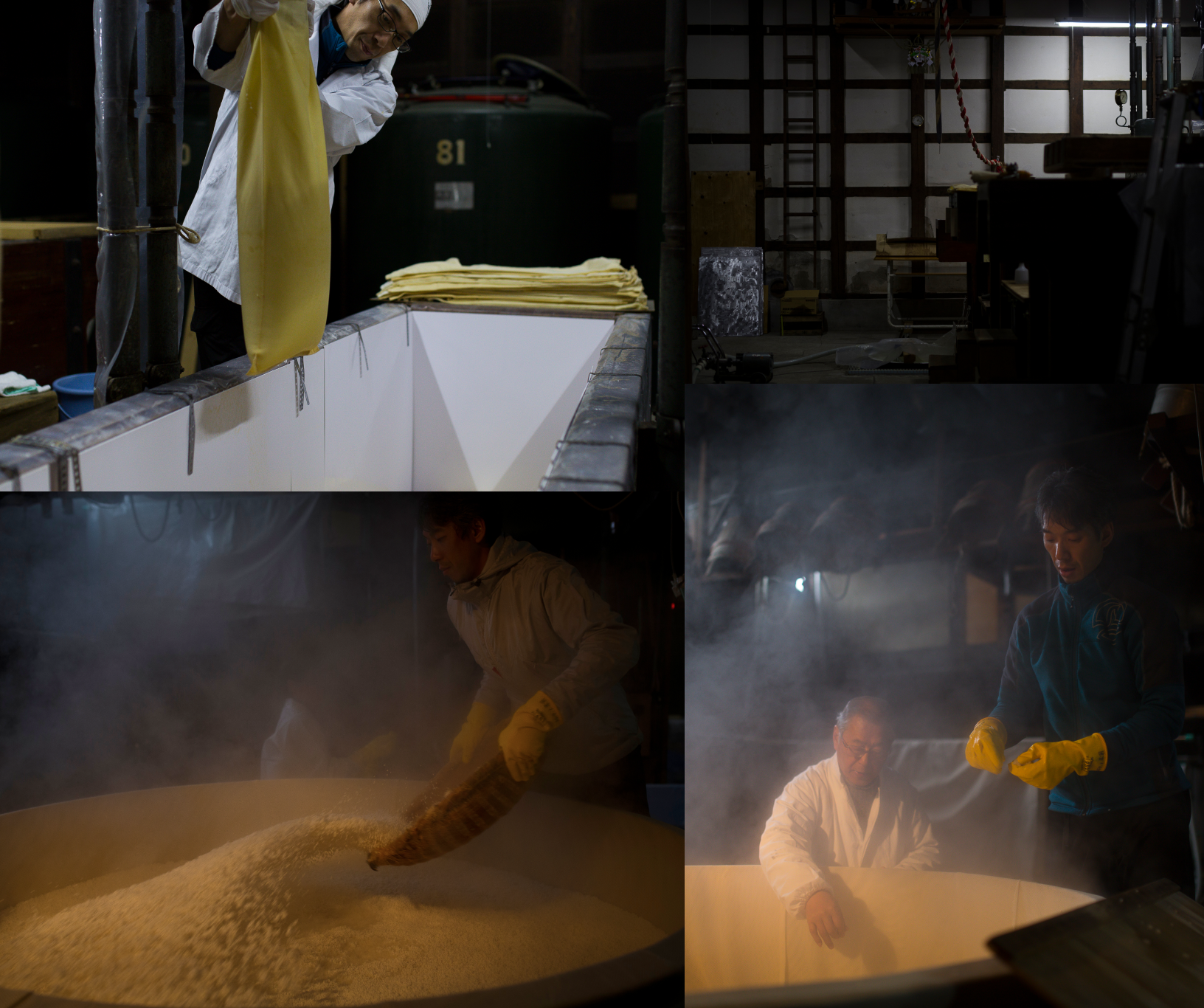 米洗いから麹造り、醪、上槽まで